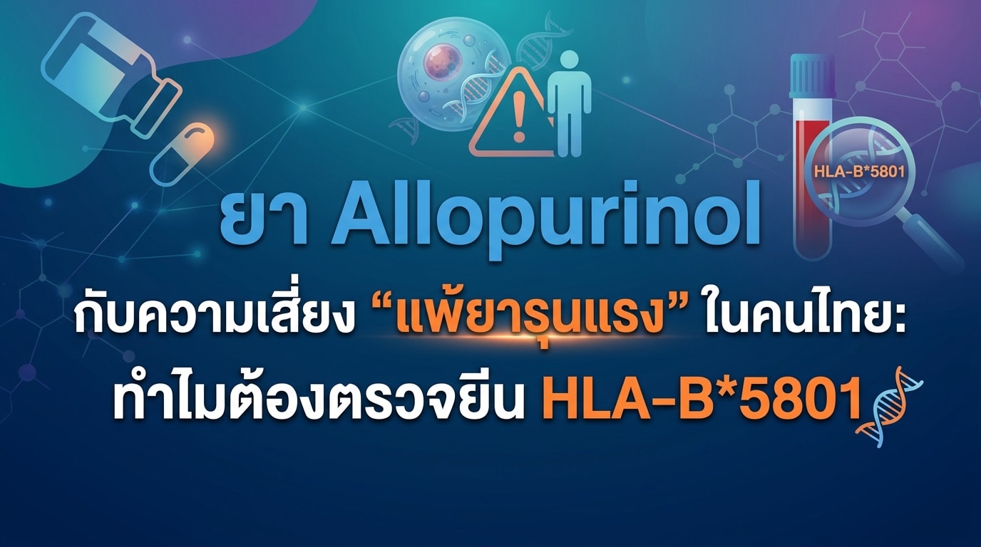 ในประเทศไทย โรคเกาต์และภาวะกรดยูริกในเลือดสูงเป็นปัญหาที่พบได้บ่อย ยา Allopurinol (อัลโลพูรินอล) คือหนึ่งในยาหลักที่ใช้ในการรักษาและควบคุมระดับกรดยูริก แต่ทราบหรือไม่ว่า ยานี้มีความเสี่ยงร้ายแรงที่อาจถึงแก่ชีวิตได้ นั่นคือ กลุ่มอาการแพ้ยารุนแรง หรือที่รู้จักกันในชื่อ Stevens-Johnson syndrome (SJS) และ Toxic Epidermal Necrolysis (TEN) ซึ่งสำหรับคนไทยและชาวเอเชียบางกลุ่ม ความเสี่ยงนี้สูงกว่าประชากรกลุ่มอื่นอย่างมีนัยสำคัญ บทความนี้จะพาทุกท่านไปทำความเข้าใจถึงความสำคัญของการ ตรวจยีน HLA-B*5801 เพื่อความปลอดภัยสูงสุดในการใช้ยา Allopurinol