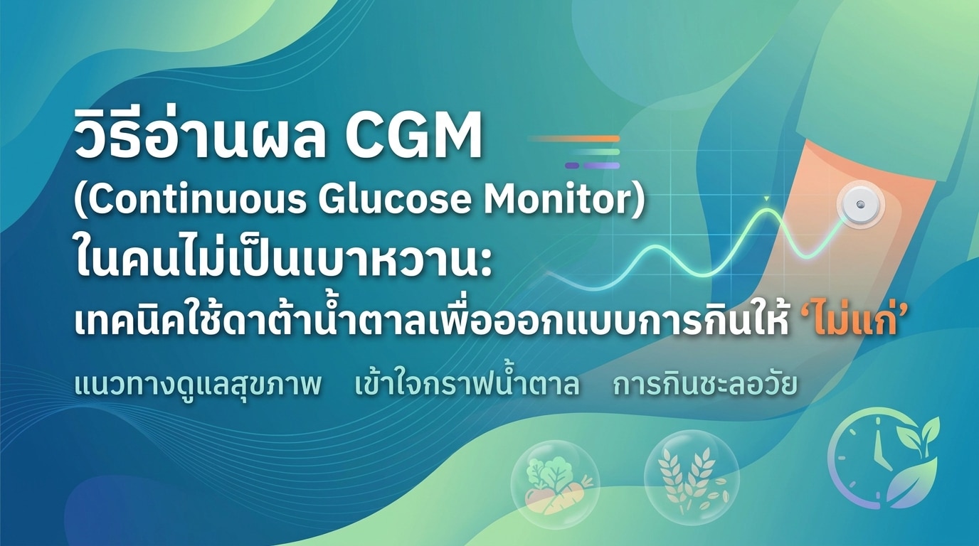 คุณเคยสงสัยไหมว่า อาหารที่คุณกินเข้าไปนั้นส่งผลต่อร่างกายคุณอย่างไรในระดับโมเลกุล? ในยุคที่เทคโนโลยีด้านสุขภาพก้าวหน้าอย่างรวดเร็ว หนึ่งในนวัตกรรมที่กำลังเปลี่ยนมุมมองที่เรามีต่ออาหารและการใช้ชีวิตคือ Continuous Glucose Monitor (CGM) หรือเครื่องวัดระดับน้ำตาลในเลือดแบบต่อเนื่อง ซึ่งเดิมทีถูกออกแบบมาสำหรับผู้ป่วยเบาหวาน แต่ปัจจุบันกลับกลายเป็นเครื่องมืออันทรงพลังสำหรับ คนไม่เป็นเบาหวาน ที่ต้องการเข้าใจร่างกายของตัวเองอย่างลึกซึ้ง และใช้ข้อมูลเหล่านั้นมา ออกแบบการกินเพื่อสุขภาพที่ดีและชะลอวัย หรือที่หลายคนเรียกว่า “ไม่แก่” บทความนี้จะเจาะลึกถึงวิธีการอ่านผล CGM สำหรับคนทั่วไป เพื่อให้คุณนำดาต้าน้ำตาลไปใช้ในการสร้างไลฟ์สไตล์ที่ช่วยให้คุณคงความอ่อนเยาว์และมีพลังงานอย่างยั่งยืน