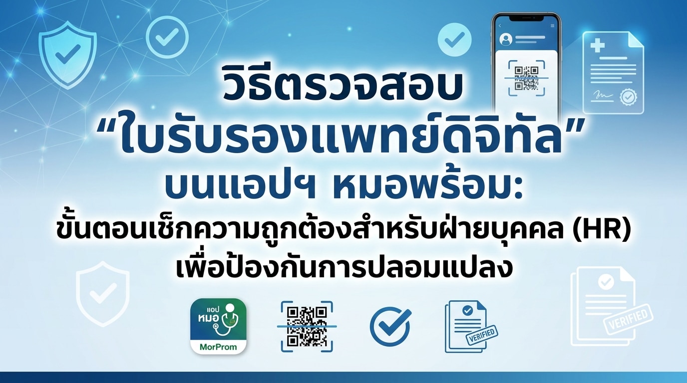 ในยุคที่เทคโนโลยีดิจิทัลเข้ามามีบทบาทสำคัญในทุกมิติของชีวิตประจำวัน รวมถึงการแพทย์และสาธารณสุข “ใบรับรองแพทย์ดิจิทัล” ที่ออกผ่านแอปพลิเคชัน “หมอพร้อม” ได้กลายเป็นเครื่องมือที่ช่วยอำนวยความสะดวกและเพิ่มความน่าเชื่อถือให้กับเอกสารทางการแพทย์ อย่างไรก็ตาม สำหรับฝ่ายบุคคล (HR) การตรวจสอบความถูกต้องของเอกสารเหล่านี้เป็นสิ่งจำเป็นอย่างยิ่งเพื่อ ป้องกันการปลอมแปลง และรักษาความโปร่งใสในองค์กร บทความนี้จะแนะนำขั้นตอนการตรวจสอบใบรับรองแพทย์ดิจิทัลบนแอปฯ หมอพร้อมอย่างละเอียด เพื่อให้ HR ทุกท่านสามารถปฏิบัติงานได้อย่างมั่นใจและมีประสิทธิภาพ