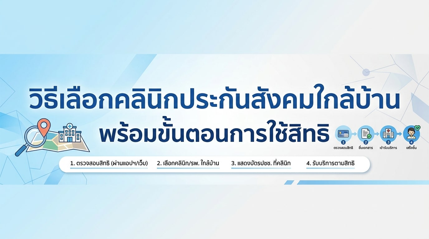 การเลือก คลินิกประกันสังคมใกล้บ้าน และทำความเข้าใจ ขั้นตอนใช้สิทธิประกันสังคม ที่ถูกต้องจะช่วยให้คุณเข้าถึงบริการสุขภาพได้อย่างมั่นใจและไร้กังวล อย่าลืมที่จะตรวจสอบสถานพยาบาลที่เหมาะสมกับไลฟ์สไตล์และความต้องการของคุณ เพื่อให้ได้รับการดูแลสุขภาพที่ดีที่สุด