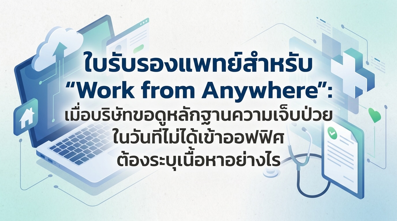 ในยุคที่ Work from Anywhere (WFA) กลายเป็นวิถีการทำงานที่แพร่หลาย องค์กรต่างๆ ทั่วโลกต่างปรับตัวเพื่อรองรับความยืดหยุ่นนี้ อย่างไรก็ตาม ความยืดหยุ่นที่มาพร้อมกับ WFA ก็อาจนำมาซึ่งคำถามและความคลุมเครือ โดยเฉพาะอย่างยิ่งในประเด็นของการลาป่วย เมื่อพนักงานไม่ได้เข้าออฟฟิศ แต่ต้องใช้สิทธิ์ ลาป่วย และบริษัทขอให้แสดง ใบรับรองแพทย์ คำถามสำคัญคือ ใบรับรองแพทย์นั้นควรระบุเนื้อหาอย่างไรให้เหมาะสมและเป็นไปตามข้อกำหนดของทั้งสองฝ่าย บทความนี้จะเจาะลึกถึงหลักปฏิบัติและข้อพิจารณาที่สำคัญ เพื่อให้ทั้งพนักงานและนายจ้างเข้าใจถึงสิ่งที่ควรเป็นในการจัดการหลักฐานความเจ็บป่วยในยุค WFA ครับ