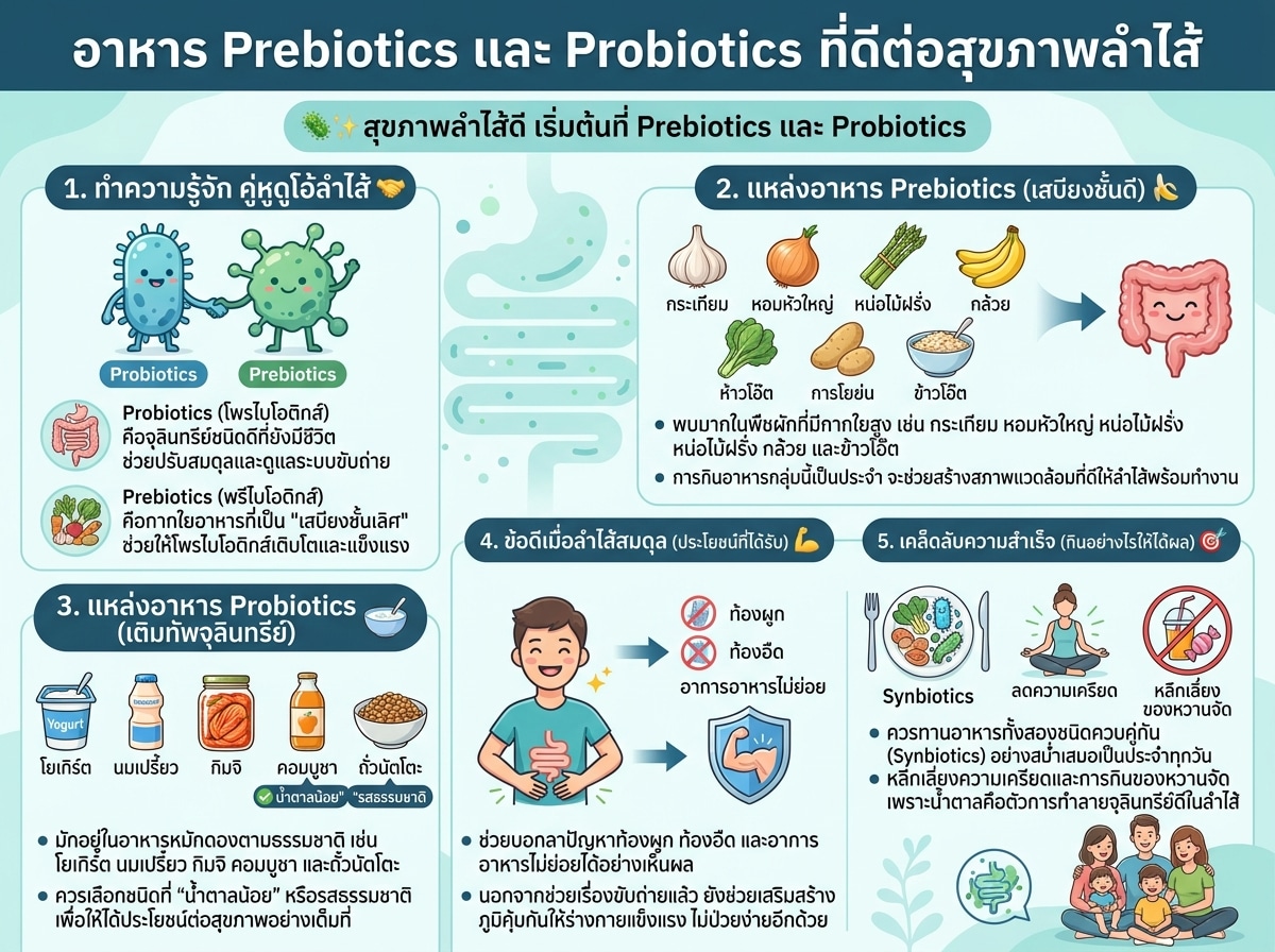 อาหารกลุ่ม Prebiotics และ Probiotics: กุญแจสำคัญของการปรับสมดุลลำไส้เพื่อภูมิคุ้มกันที่ดี