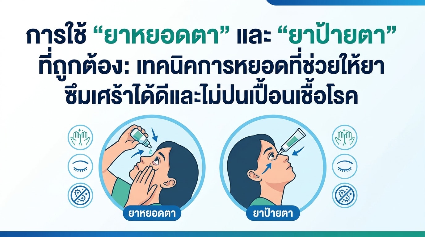 การดูแลดวงตาเป็นสิ่งสำคัญอย่างยิ่งในชีวิตประจำวัน เมื่อดวงตาเกิดปัญหา ไม่ว่าจะเป็นอาการระคายเคือง ตาแห้ง หรือการติดเชื้อ การใช้ ยาหยอดตา และ ยาป้ายตา คือวิธีรักษาที่แพทย์นิยมแนะนำ แต่คุณแน่ใจหรือไม่ว่าคุณกำลังใช้ยาเหล่านี้อย่างถูกวิธี? การหยอดหรือป้ายยาที่ไม่ถูกต้อง ไม่เพียงแต่ทำให้ยาออกฤทธิ์ได้ไม่เต็มที่ แต่ยังเพิ่มความเสี่ยงต่อการปนเปื้อนเชื้อโรค และอาจทำให้อาการแย่ลงได้ บทความนี้จะเจาะลึกถึง เทคนิคการหยอดตาที่ช่วยให้ยาซึมซับได้ดี และ ป้องกันตาติดเชื้อ ให้คุณดูแลดวงตาได้อย่างปลอดภัยและมีประสิทธิภาพสูงสุด