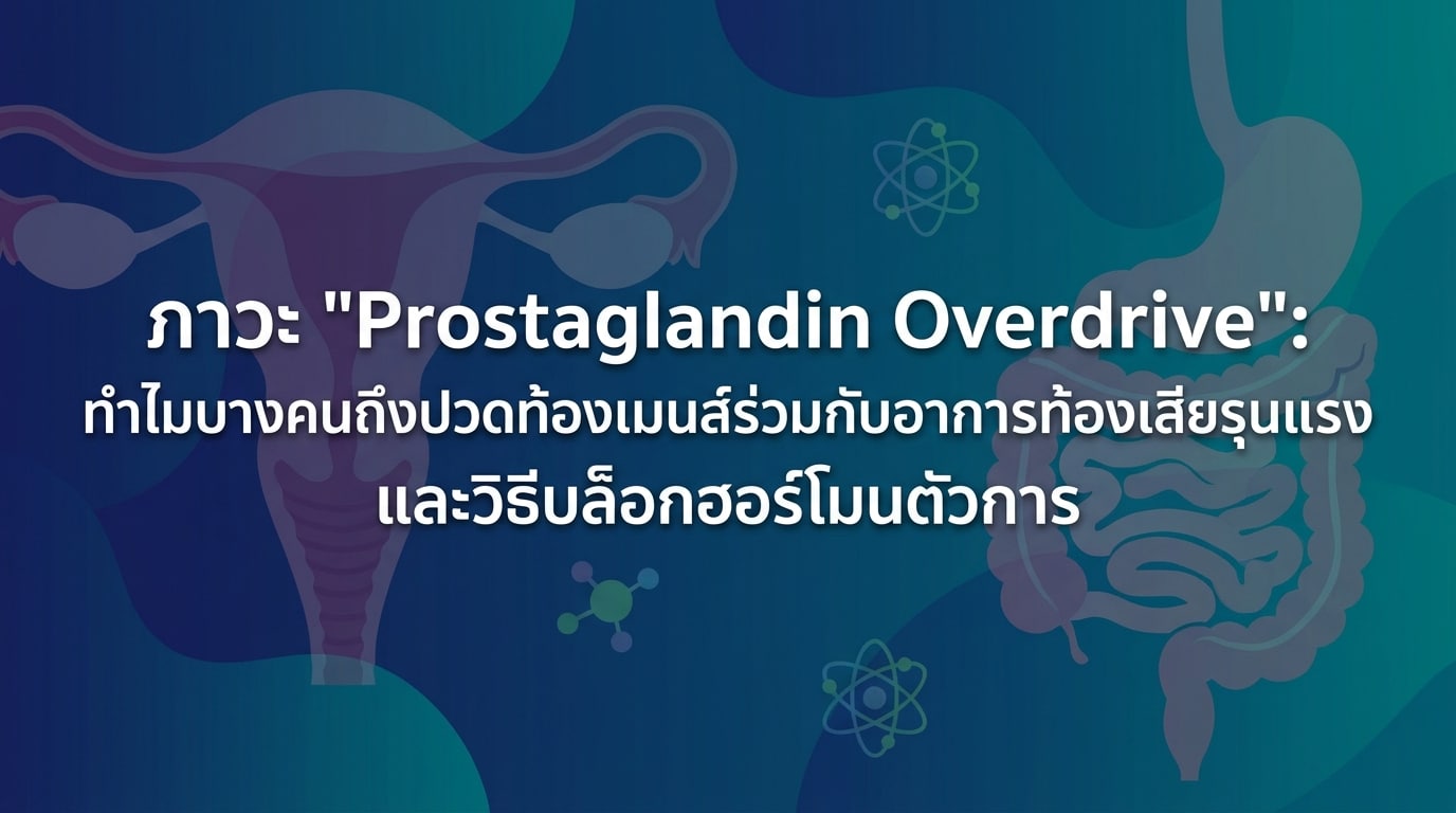 คุณเป็นหนึ่งในผู้หญิงหลายคนที่ต้องเผชิญกับฝันร้ายซ้ำๆ ในทุกเดือนหรือไม่? อาการปวดท้องเมนส์ที่รุนแรงจนแทบจะขยับตัวไม่ได้ ไม่ใช่แค่ปวดบีบ ปวดหน่วง แต่ยังมาพร้อมกับอาการท้องเสียอย่างหนัก คลื่นไส้ หรือแม้แต่วิงเวียนศีรษะ สิ่งเหล่านี้ไม่ใช่เรื่องที่คุณต้องทน และไม่ใช่เรื่องที่คุณคิดไปเอง อาการเหล่านี้มีชื่อเรียกทางการแพทย์ว่า “Prostaglandin Overdrive” ซึ่งเกิดจากการที่ร่างกายมีการผลิตฮอร์โมนบางชนิดมากเกินไป บทความนี้จะเจาะลึกถึงสาเหตุที่แท้จริง พร้อมแนะนำวิธีที่คุณสามารถจัดการและบล็อกฮอร์โมนตัวการ เพื่อให้คุณกลับมาใช้ชีวิตได้อย่างสบายตัวในช่วงวันนั้นของเดือน