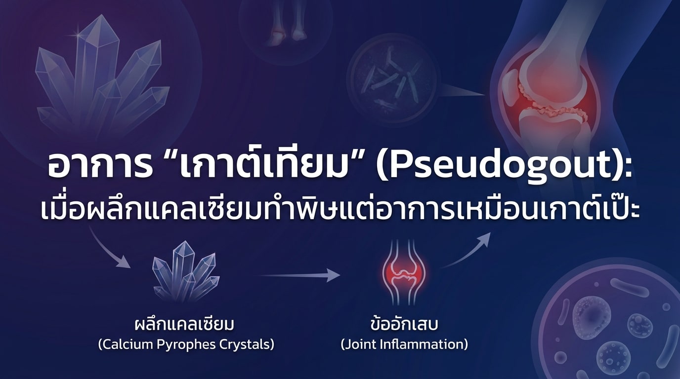 คุณเคยมีอาการปวดข้ออย่างรุนแรง บวม แดง และร้อน บริเวณข้อต่อหรือไม่? หากคำตอบคือใช่ คุณอาจกำลังเผชิญกับอาการที่คล้ายคลึงกับโรคเกาต์ แต่แท้จริงแล้วมันอาจเป็น "เกาต์เทียม" หรือ Pseudogout ซึ่งเป็นภาวะที่เกิดจากการสะสมของผลึกแคลเซียมในข้อต่อ วันนี้เราจะพาคุณไปทำความเข้าใจโรคนี้ให้ลึกซึ้งยิ่งขึ้น เพื่อให้คุณสามารถสังเกตอาการและเข้ารับการรักษาได้อย่างทันท่วงที