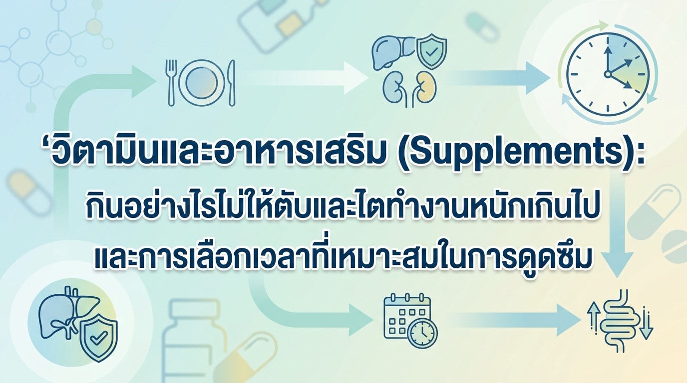 วิตามินและอาหารเสริม (Supplements): กินอย่างไรไม่ให้ตับและไตทำงานหนักเกินไป และการเลือกเวลาที่เหมาะสมในการดูดซึม