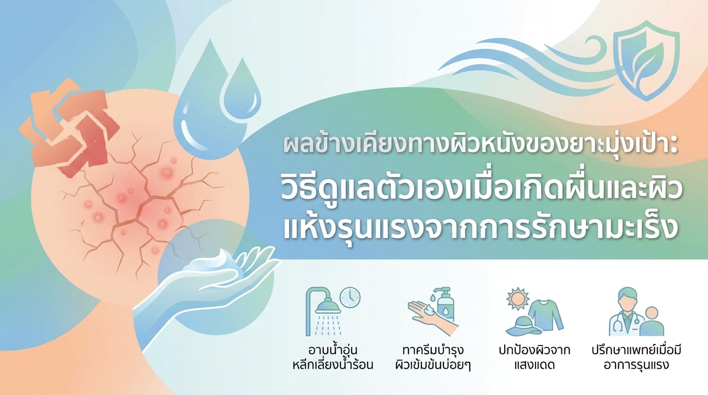 การจัดการกับผลข้างเคียงทางผิวหนังของยามุ่งเป้าเป็นส่วนสำคัญของการรักษามะเร็ง การดูแลผิวอย่างอ่อนโยน สม่ำเสมอ และถูกวิธี จะช่วยบรรเทาอาการผื่นและผิวแห้งรุนแรง ลดความรู้สึกไม่สบาย และช่วยให้คุณสามารถดำเนินชีวิตประจำวันได้อย่างมีคุณภาพมากขึ้น อย่าลังเลที่จะปรึกษาทีมแพทย์และพยาบาลผู้เชี่ยวชาญ เพื่อขอคำแนะนำและการสนับสนุนที่เหมาะสมกับสภาพผิวของคุณมากที่สุด